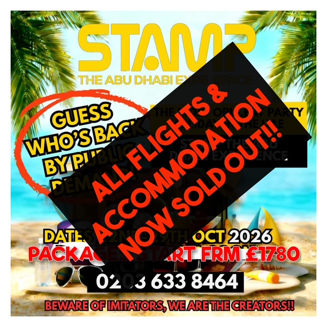 FLIGHTS & ACCOMODATION ARE NOW COMPLETLEY SOLD OUT!! For more info regarding rooms, email us at teamstamp2019@gmail.com or call our hotlines 0203 633 8464, 07944795072.
